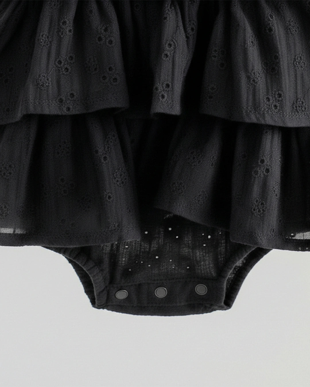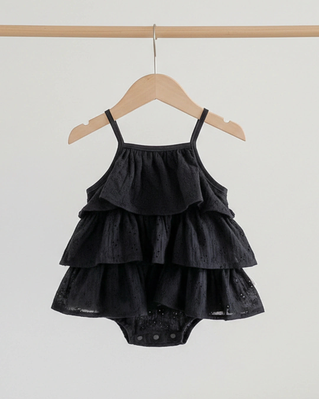 • Features: Vibrant solid color, tiered ruffle layers, easy-to-wear romper style