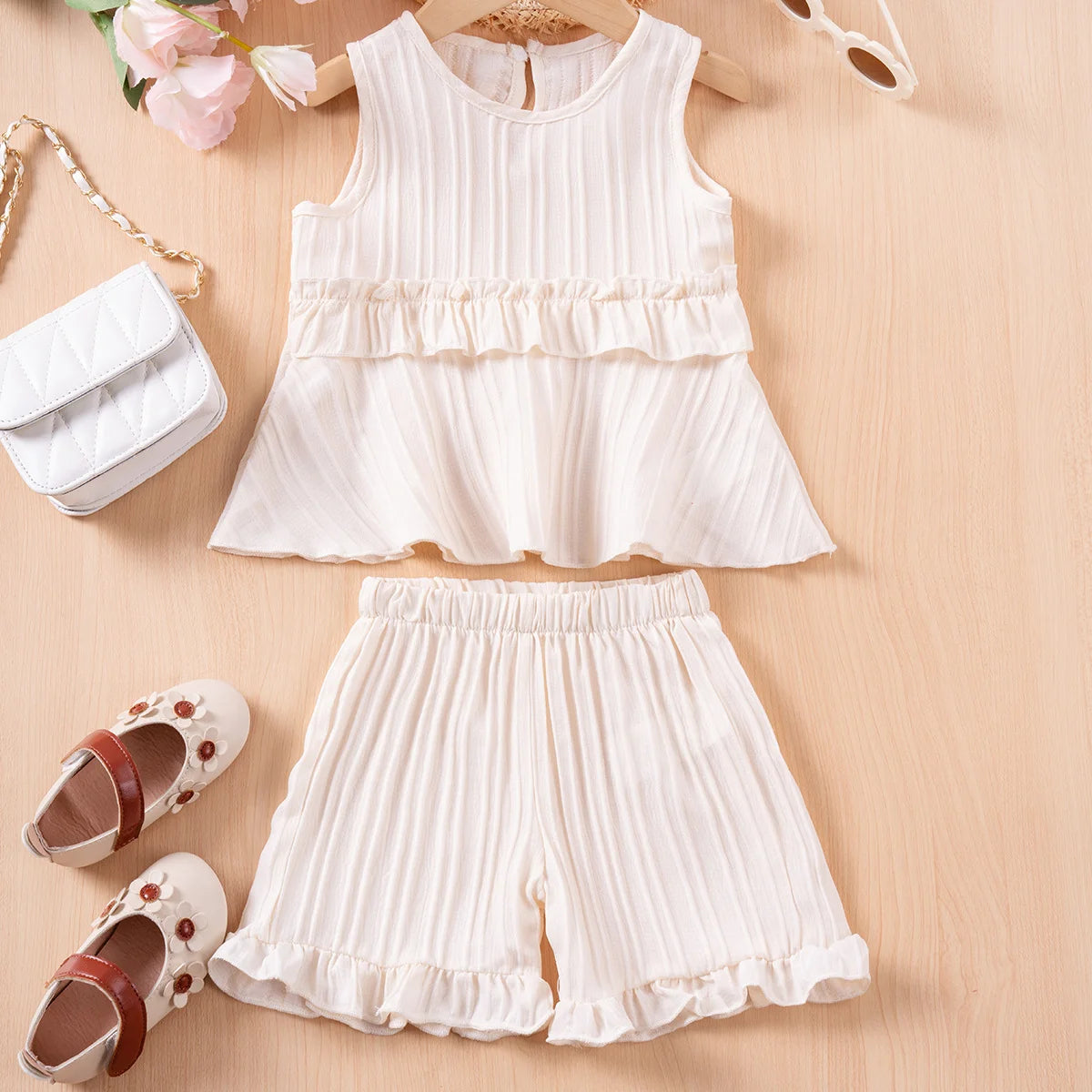 Stylish Design: Solid-colored lace top with ruffle sleeves and matching shorts, exuding elegance and sweetness. Perfect for summer outings, parties, and special occasions.