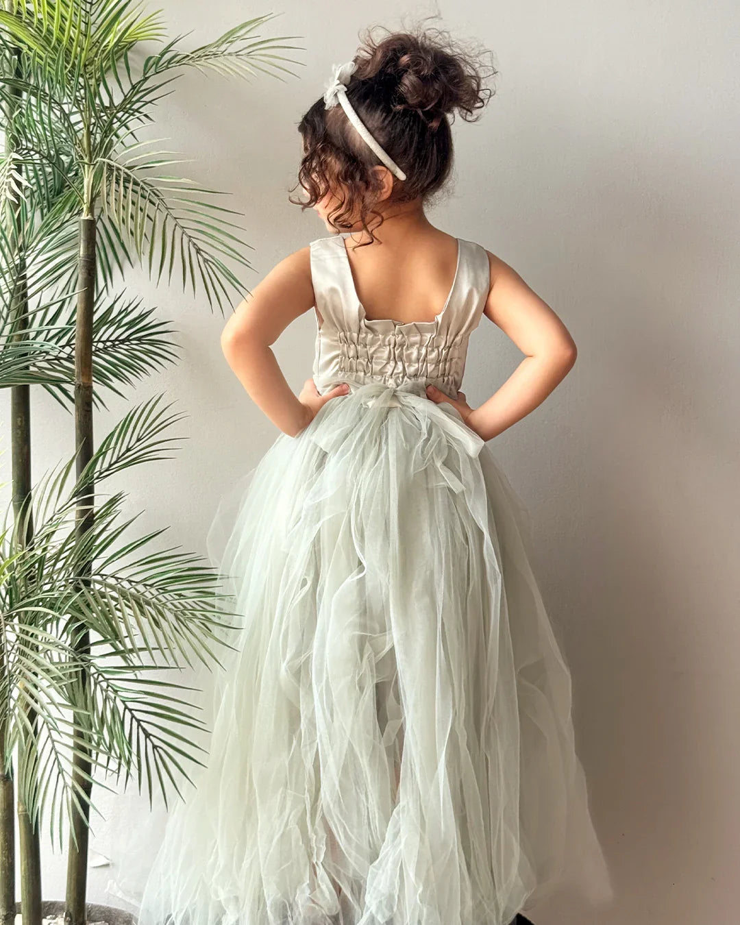 Outer: Satin bodice & twirl-worthy multi-layer premium polyester airy tulle with volume