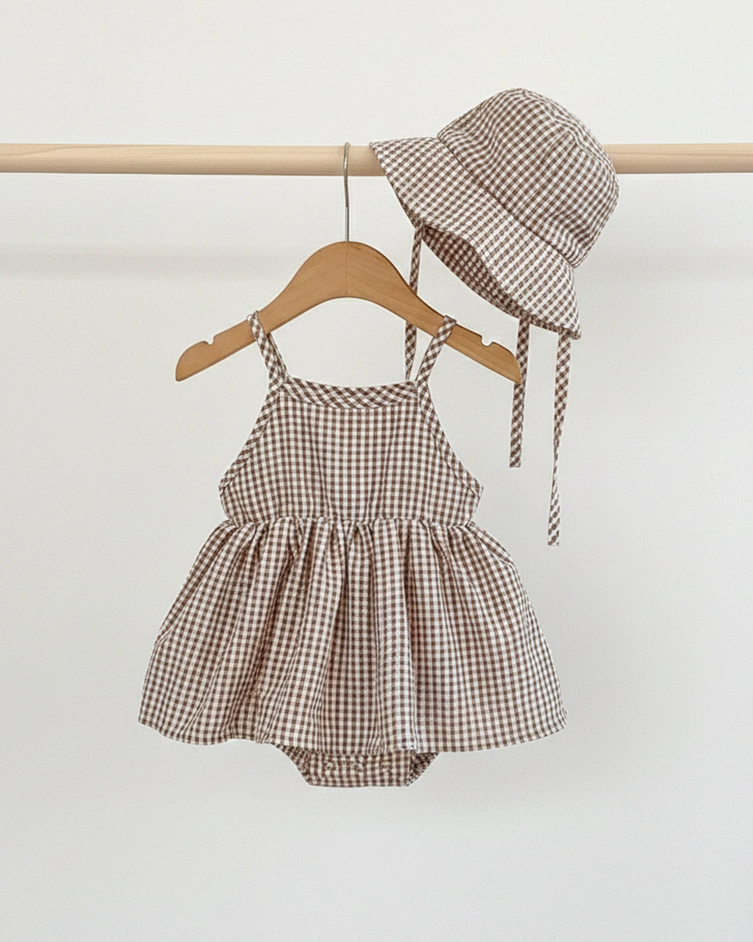 • Brown Checkered Romper with Hat