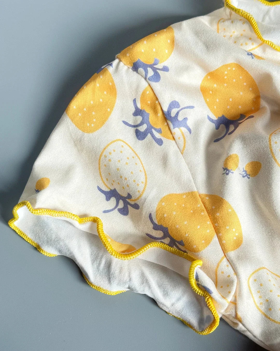 Pattern: Cheerful all-over peach print that adds a fun vibe