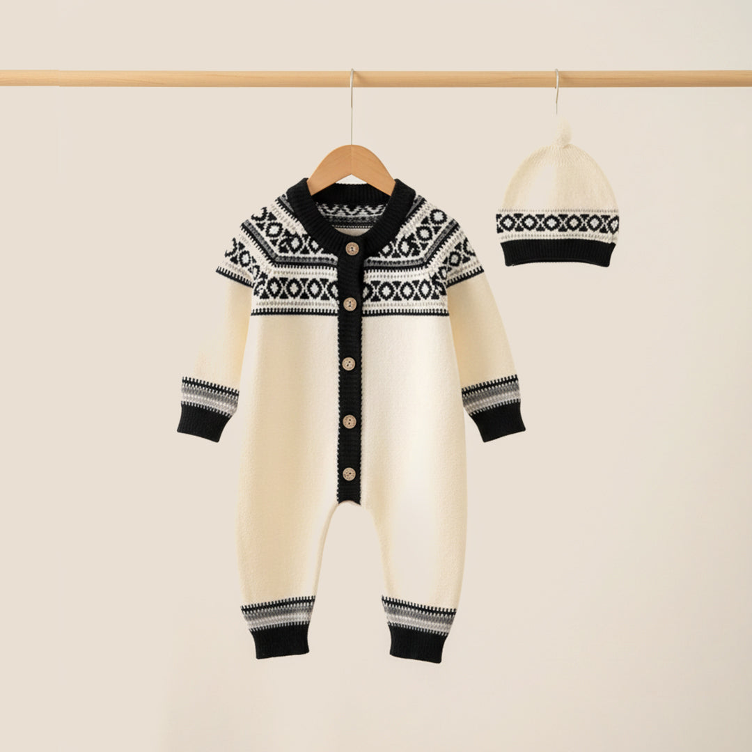 • Outfit Type: Long-sleeve knit romper with matching hat (2-piece set)