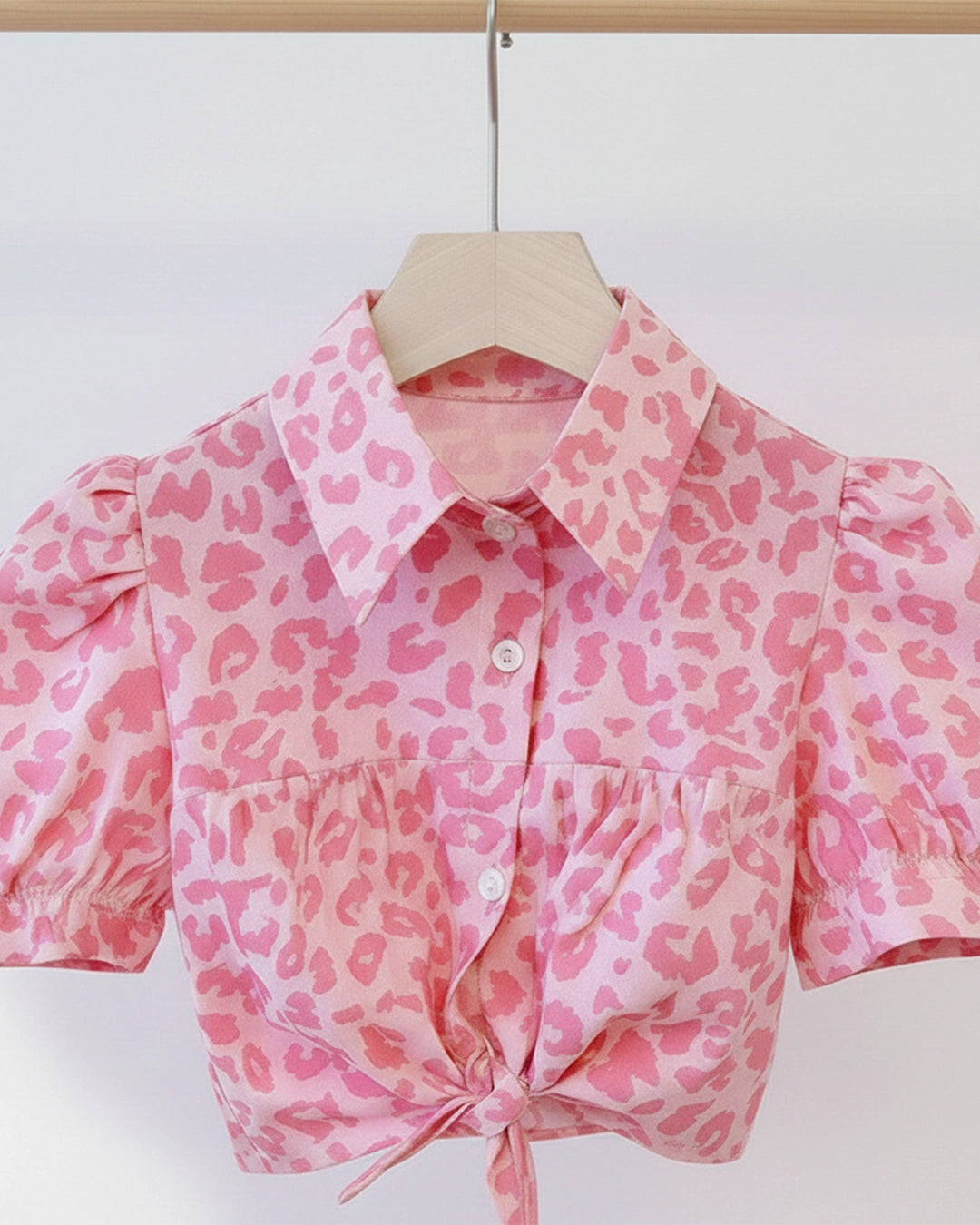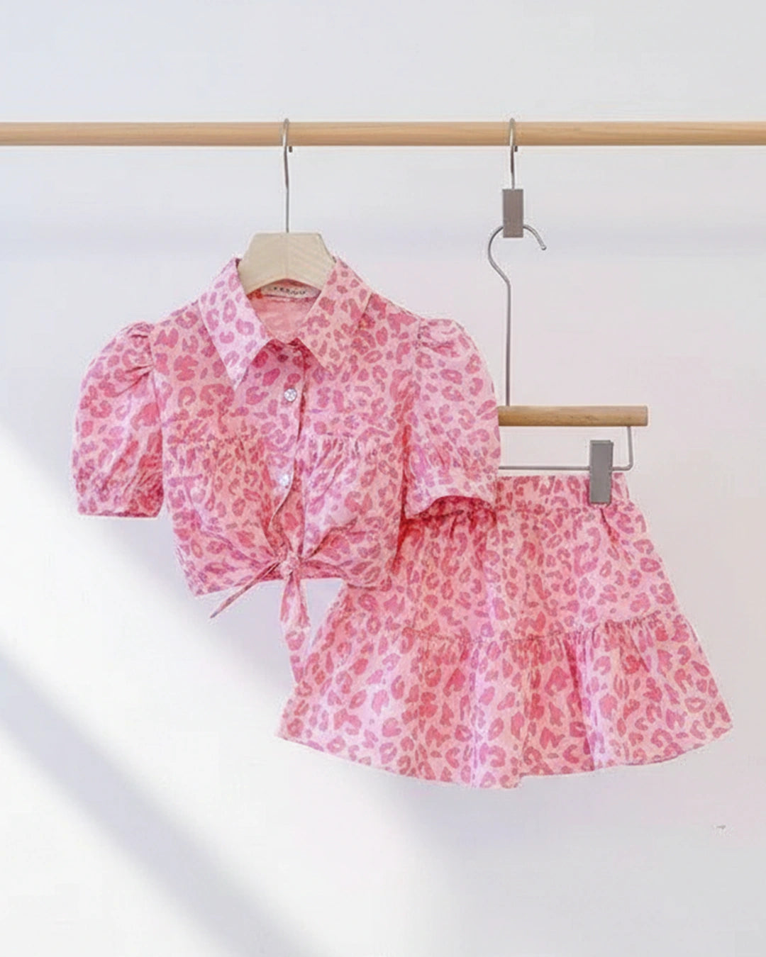 • Features: Stylish leopard print, collared design with bubble sleeves, front pockets on shirt, elastic waist skirt with ruffle hem, easy for diaper changes