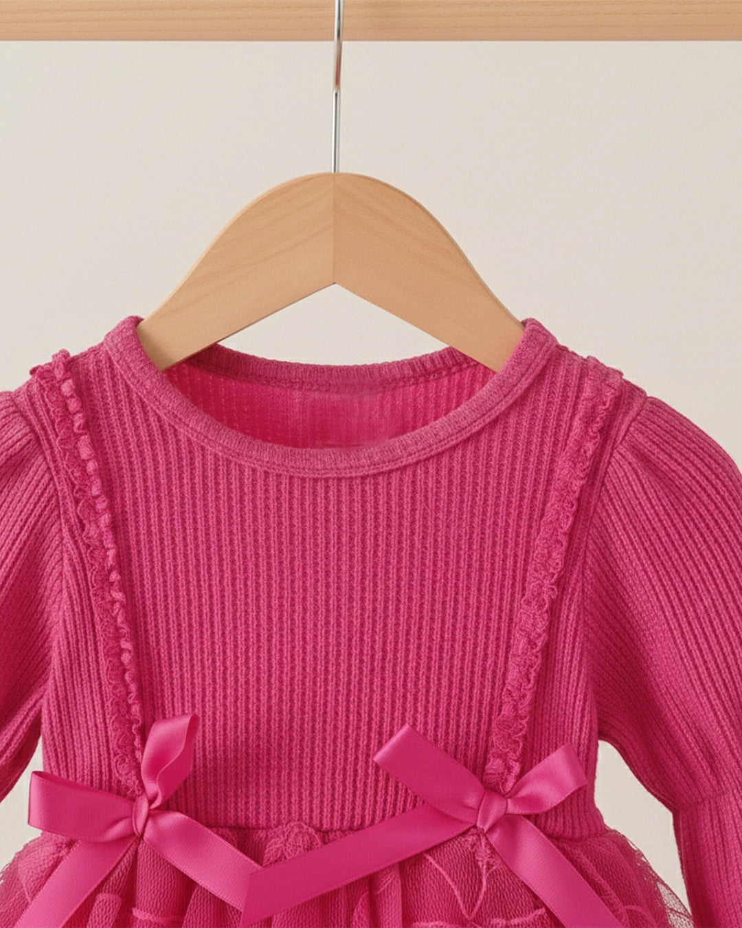 • Sleeve Type: Stylish lantern sleeves with bow detail