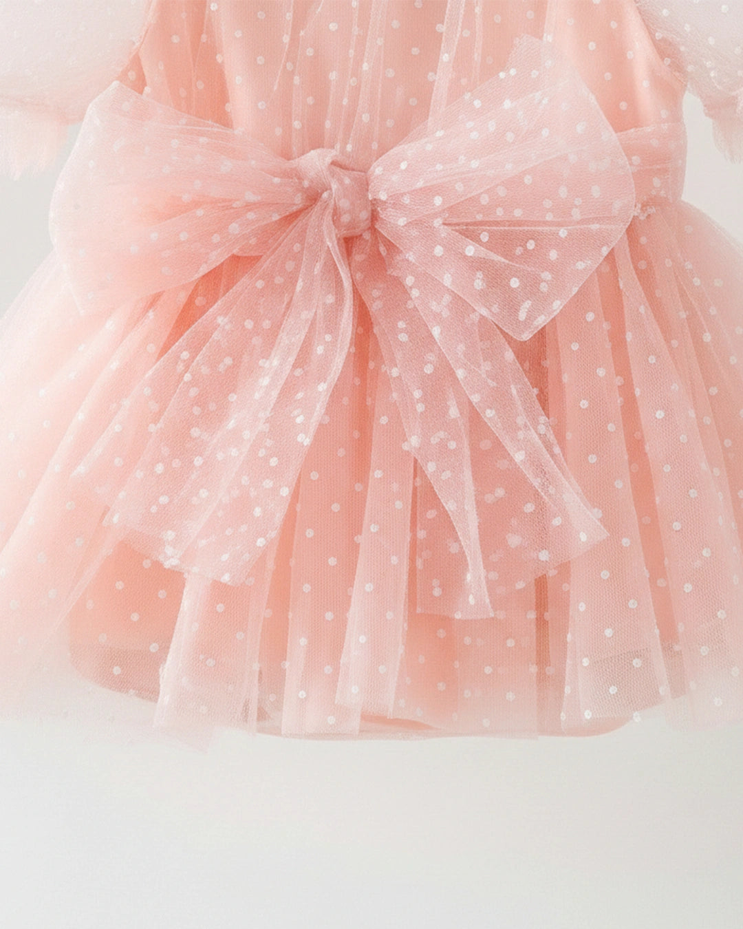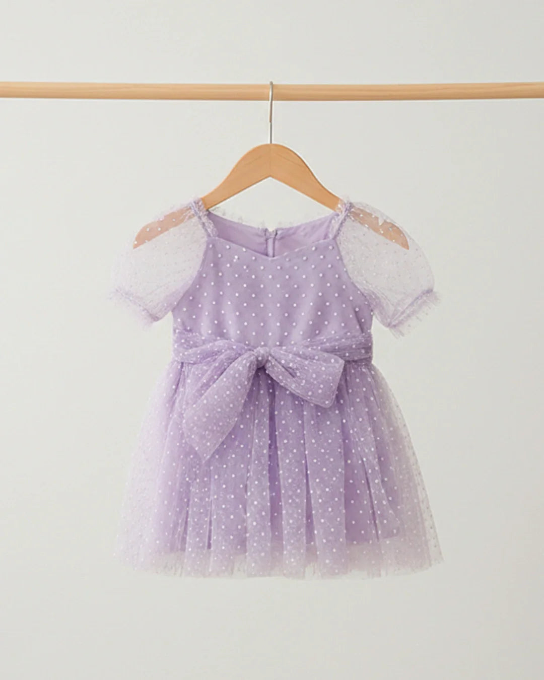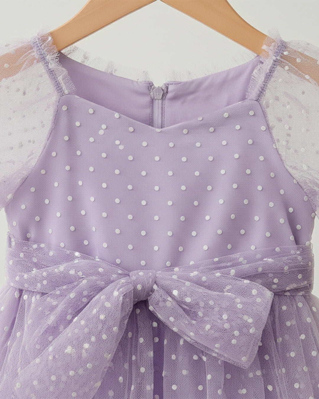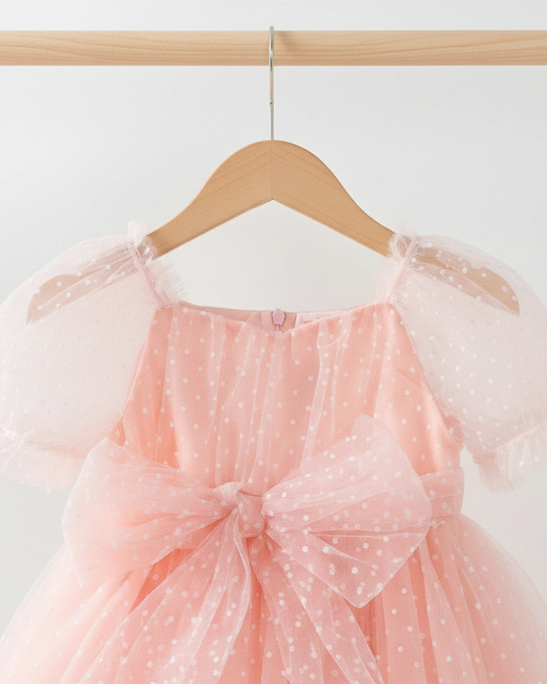• Features: Delicate mesh layers, whimsical polka dot pattern, charming puff sleeves, layered cake design