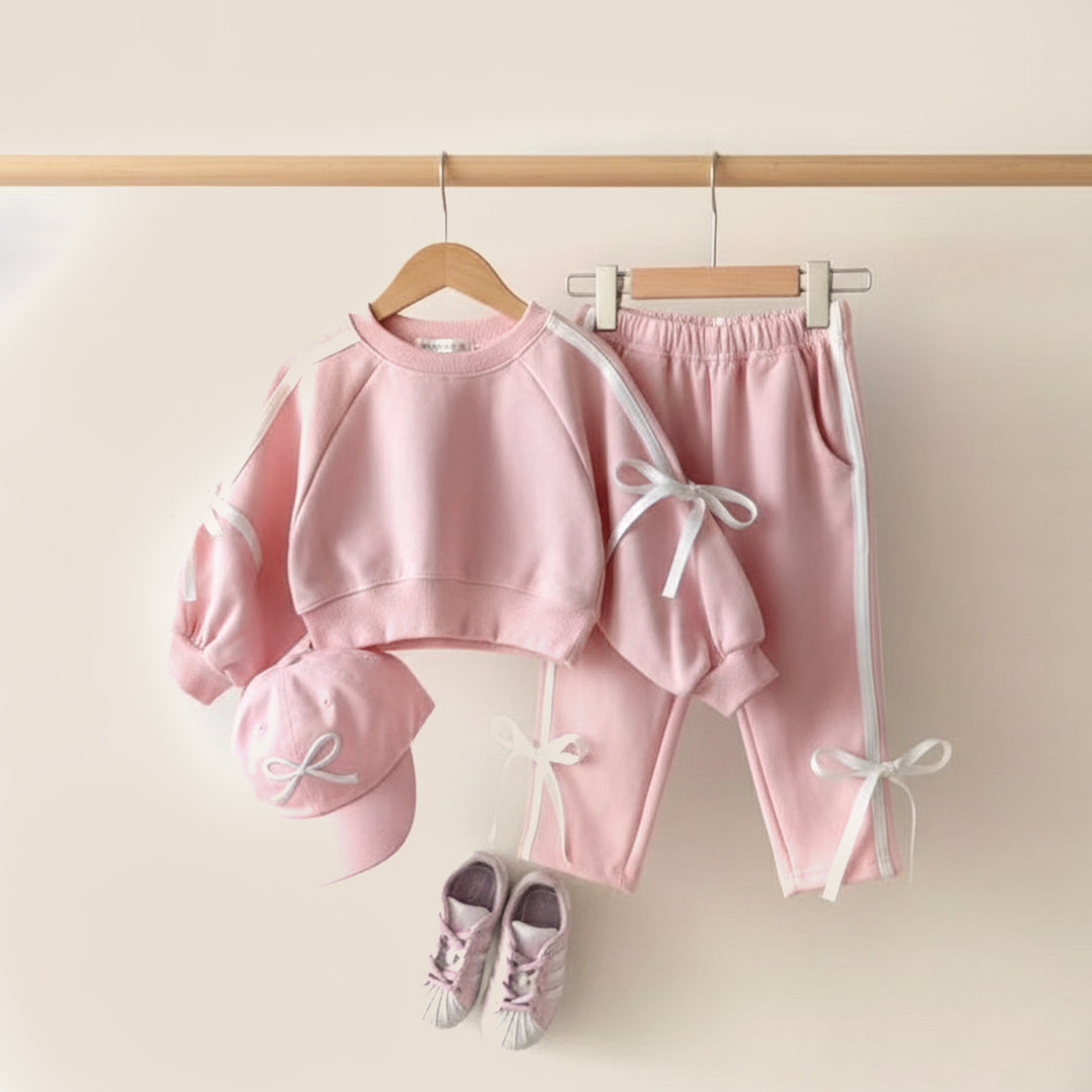 Key Highlights – Sweet ribbon-and-bow detailing, cozy fleece comfort, and a modern cropped silhouette that pairs perfectly with skirts, jeans, or leggings.